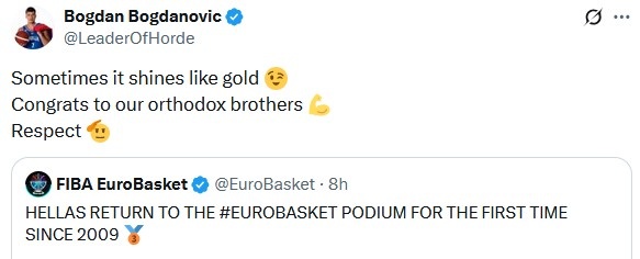 Bogdan congratulates Greece: Sometimes bronze medals shine like gold medals Congratulations to the Orthodox brothers