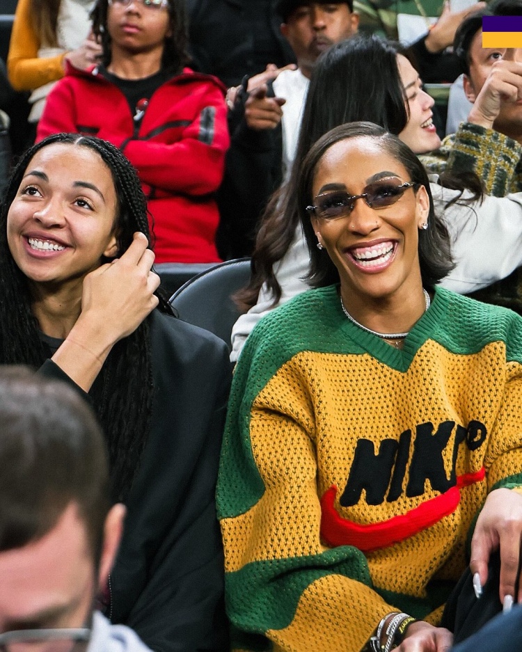 In our territory! Aja Wilson and other ace players watch the Lakers VS Mavericks game in Las Vegas