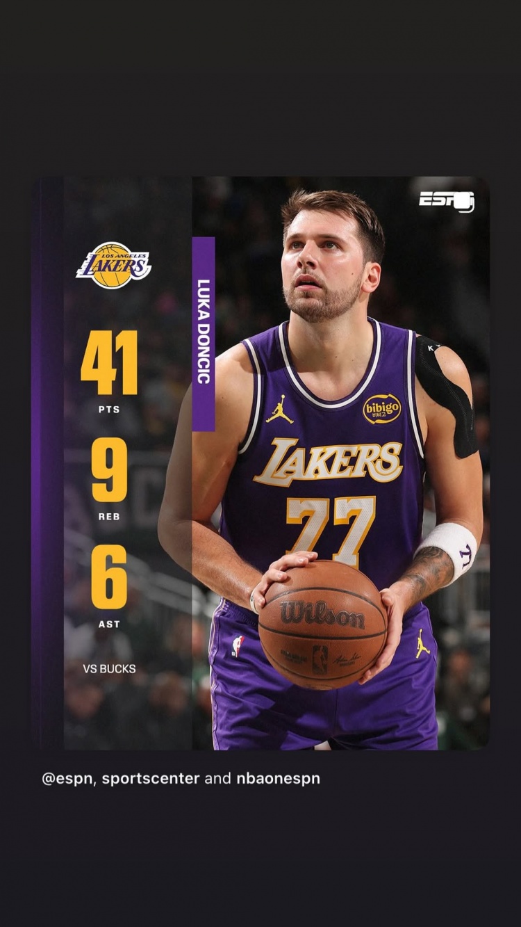 Today, the Lakers defeated the Bucks 119-95 away from home. After the game, Lakers forward James updated his Instagram Story.