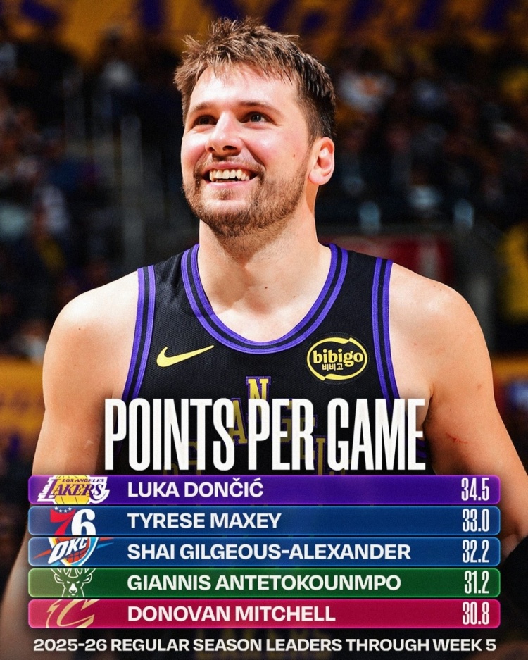 New season scoring list: Doncic leads the way with 34.5 points per game, Maxi beats SGA, Antetokounmpo ranks fourth