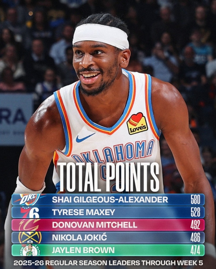 Today, the NBA officially updated the average scoring list and total scoring list for the first five weeks of the new season.