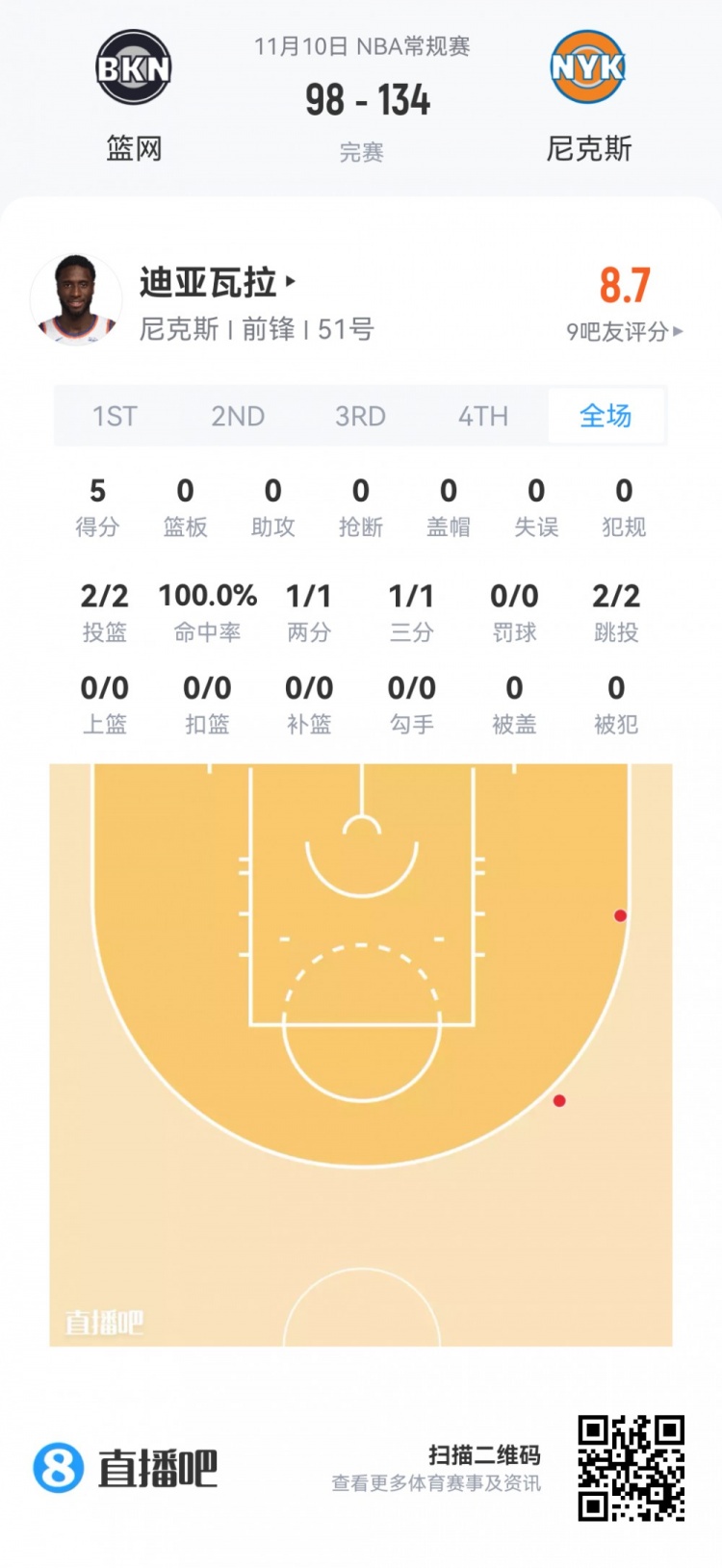 Mohamed Diawara, the No. 51 pick in the second round of the Knicks, played for 5.2 minutes