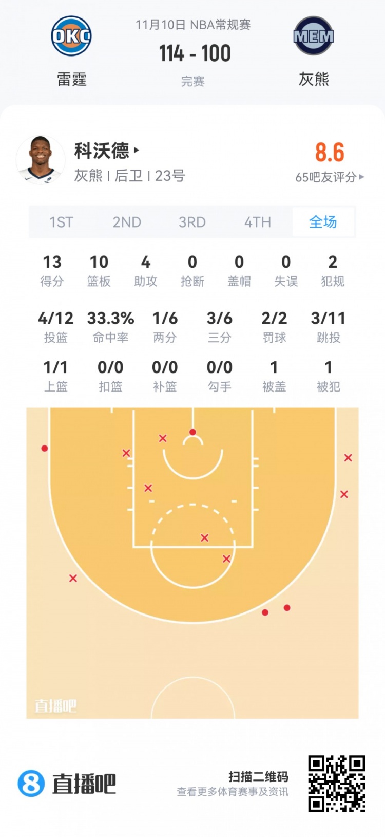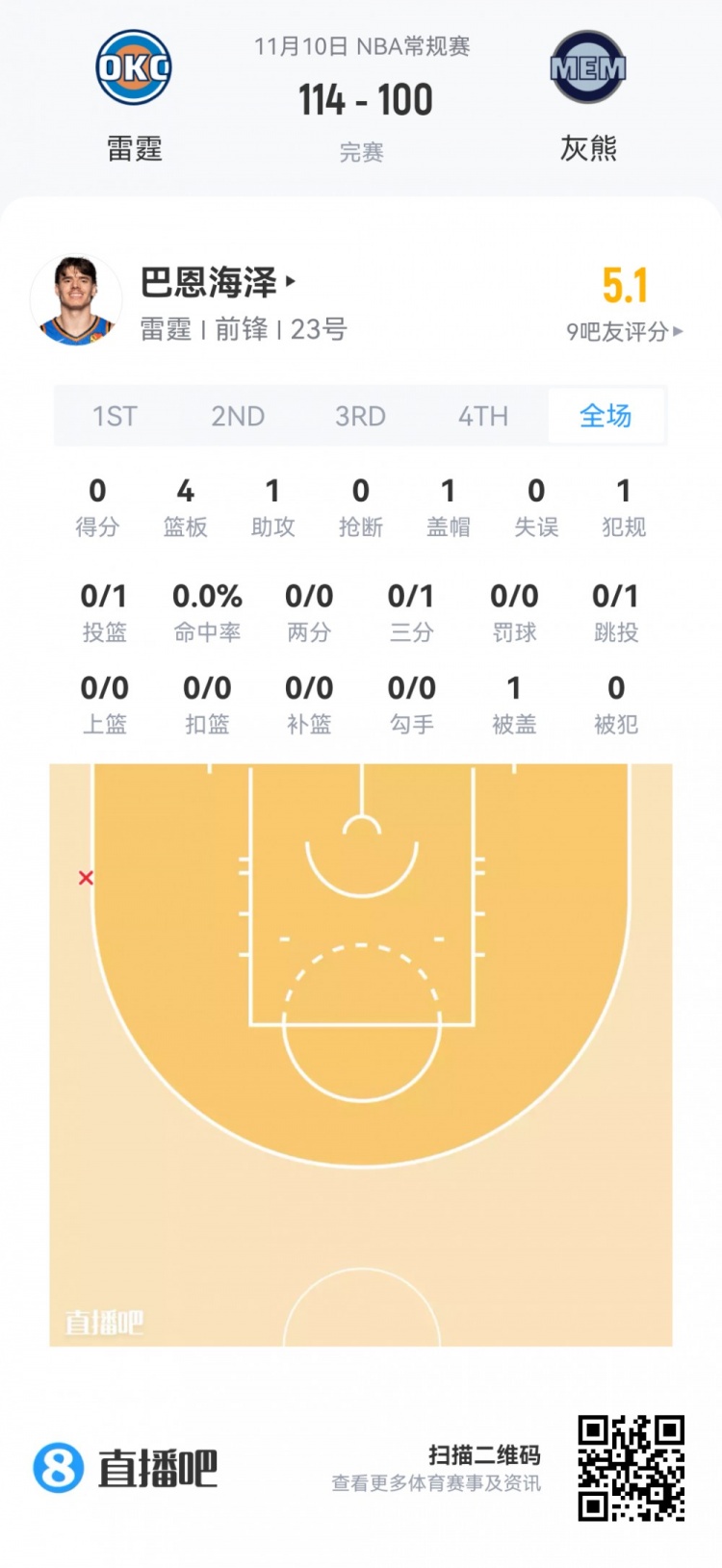 Thunder undrafted Chris Youngblood appeared for 4 minutes and 49 seconds