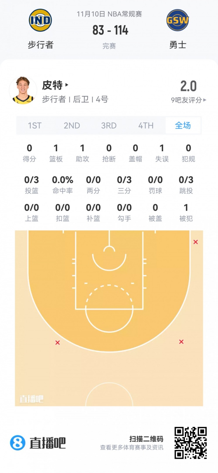 Tyrann Peet, No. 54 pick of the second round of Pacers, Played 6.5 minutes