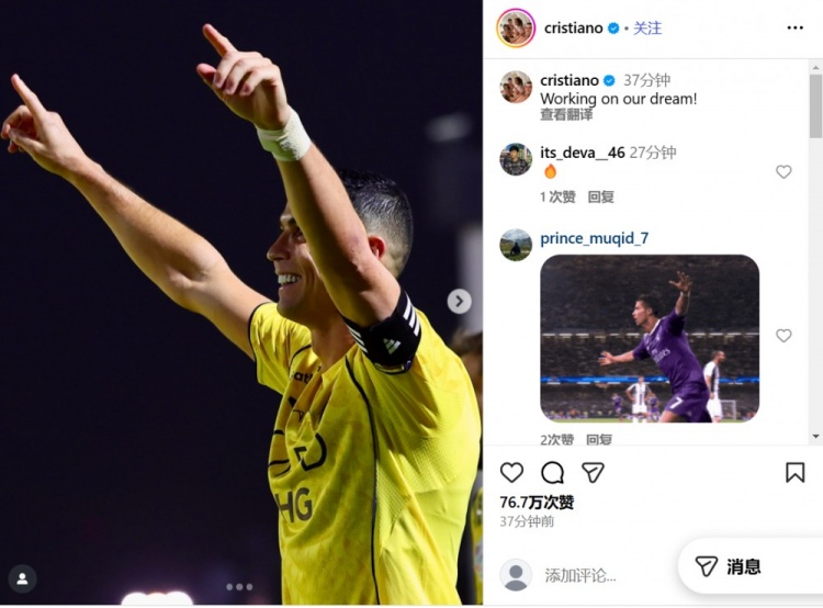 A penalty shot helped Riyadh win 3-1, Ronaldo social media: Work hard for our dreams