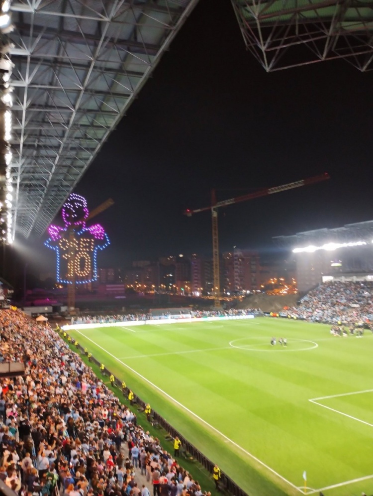 The 38-year-old Aspas played 534 games for Celta Vigo, becoming the player with the most appearances in team history. After the game, Celta used a drone performance at home to pay tribute to him.