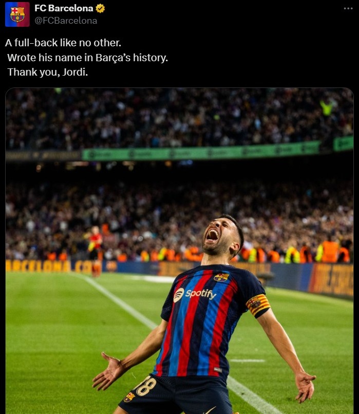 Not long ago, Barcelona officially updated its social media, paying tribute to the legendary Alba who announced that he would retire after the end of the season.
