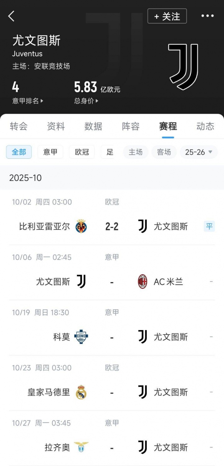 Next, Juventus will usher in a relatively difficult schedule. This weekend, facing AC Milan, the top Serie A list, and three consecutive away games in the international matches, challenging Como, La Liga giants Real Madrid and Serie A powerhouse Lazio. Will Juventus continue to draw in a row?