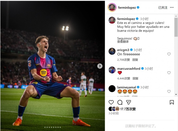 Fermin social media posted photos of passionate celebrations with the text: "This is the way forward! I am very happy to contribute to this beautiful team victory! Keep up the good work!"