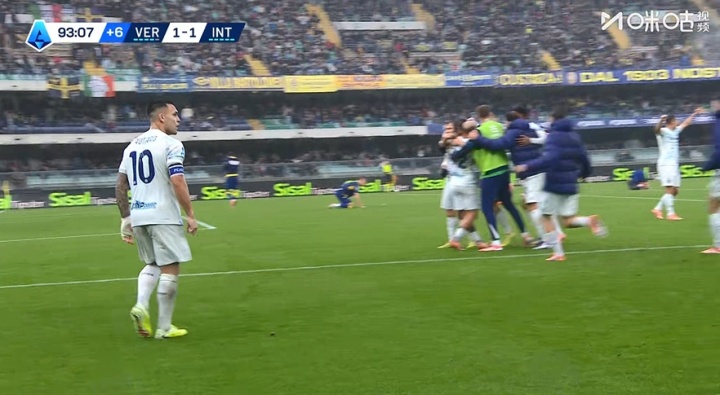 Inter Milan scored the winner in the 93rd minute! Barrera s cross leads to an own goal, Inter Milan leads Verona 2-1