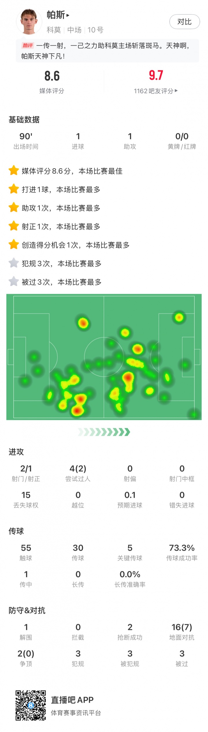 Nico Paz is 21 years old, 186cm tall and 74kg in weight (data from Italian Sky, ESPN, etc.). When playing against Juventus, Paz had as many as 16 ground confrontations, 7 of which were successful.