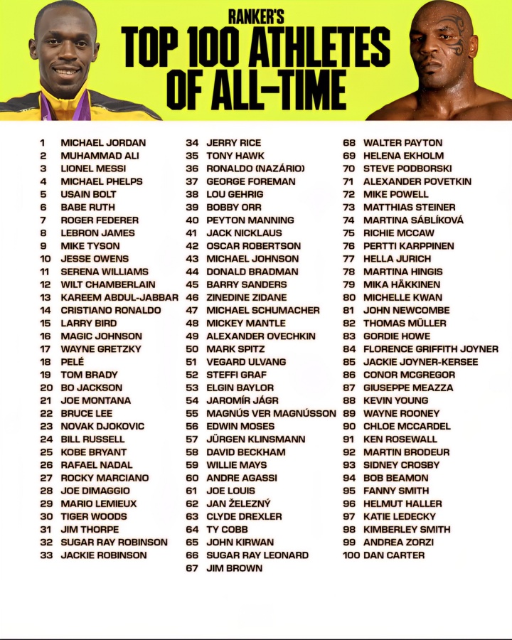 Foreign media ranks the top 100 athletes in history: