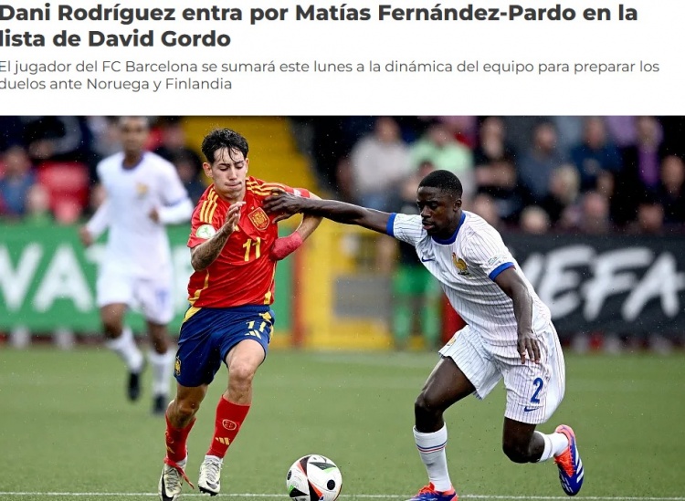 The Spanish Football Association officially announced that Barcelona teenager Dani Rodriguez was called up by Spain's U21. On the other hand, Matthias Fernandez Pardo (Lill) was absent due to injury.