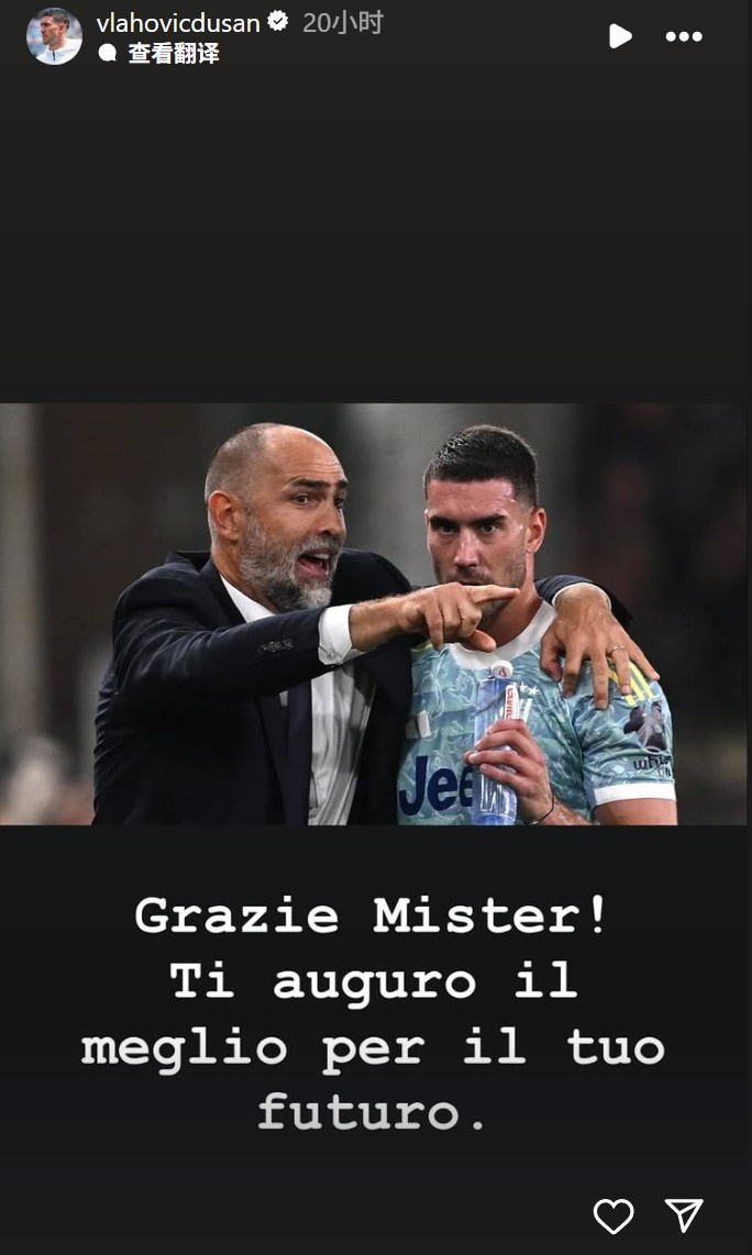 Juventus has officially announced the dismissal of coach Tudor, and center Vlahovic said goodbye to him through social media recently.