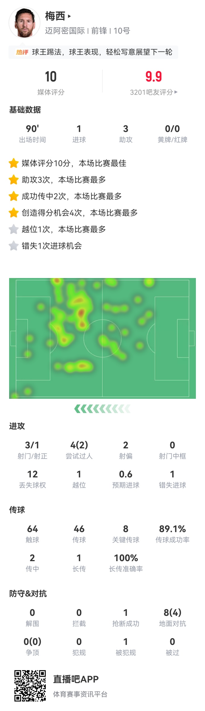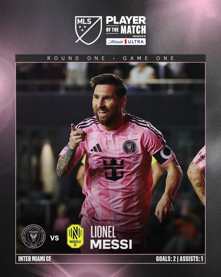 In Miami International's 3 playoff victories this season, Messi was named the best of the game. Messi's total data in the 4 playoff games was 6 goals and 4 assists.